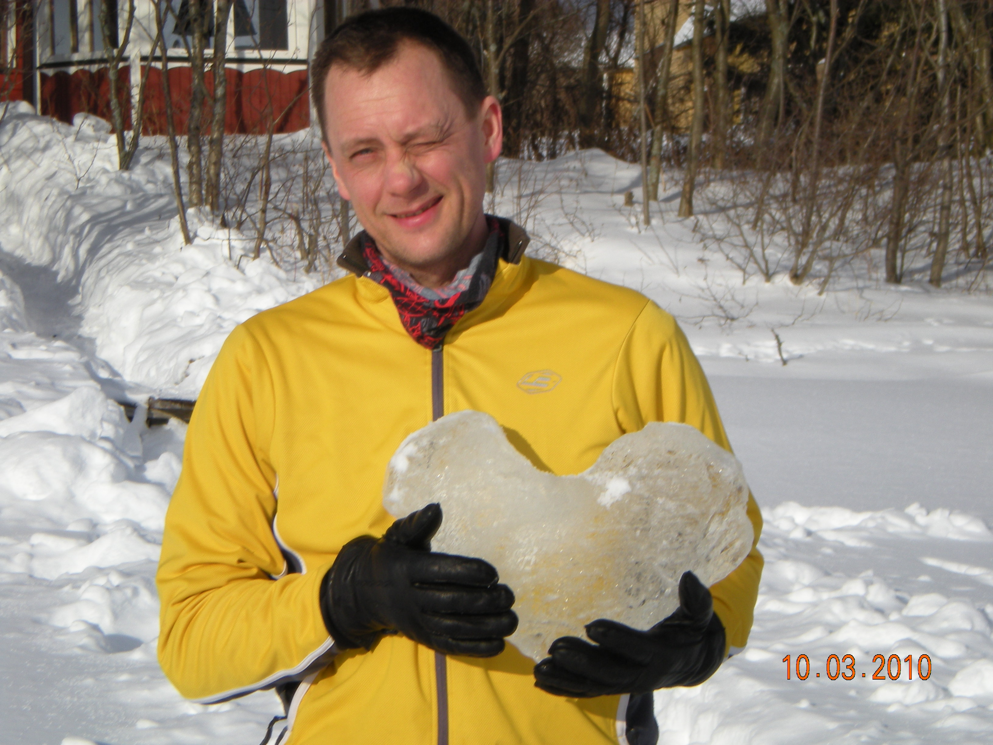 Minähän se siinä möllötän kevät auringossa. Muksujen kanssa tehtiin kerran keväällä avantoa ja samalla veistettiin jäätä.