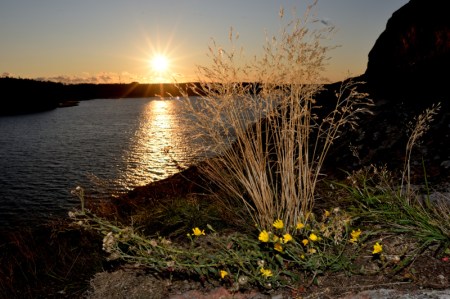 Oli vapaata aikaa illalla, ja tähtäsin Naantalin Kuparivuorelle ihmettelemään auringonlaskua. Hyvällä säkällä sieltä saisi kivan valokuvan, kun aurinko painuu Jennin ja Saulin kesämökin taakse. Ja saihan sieltä kuvan.